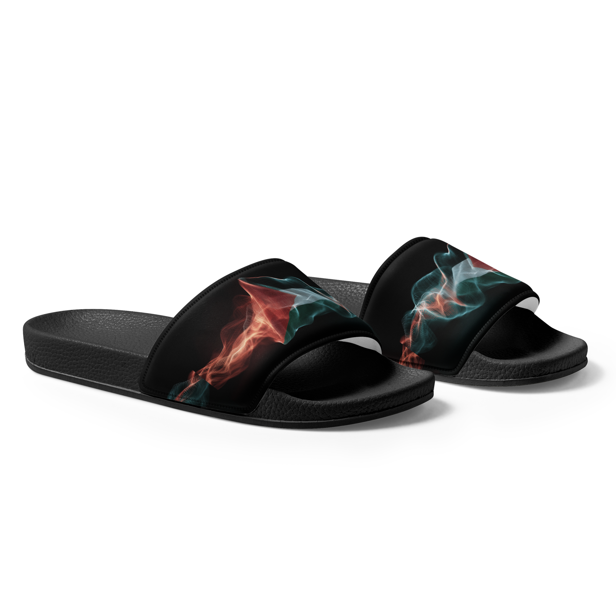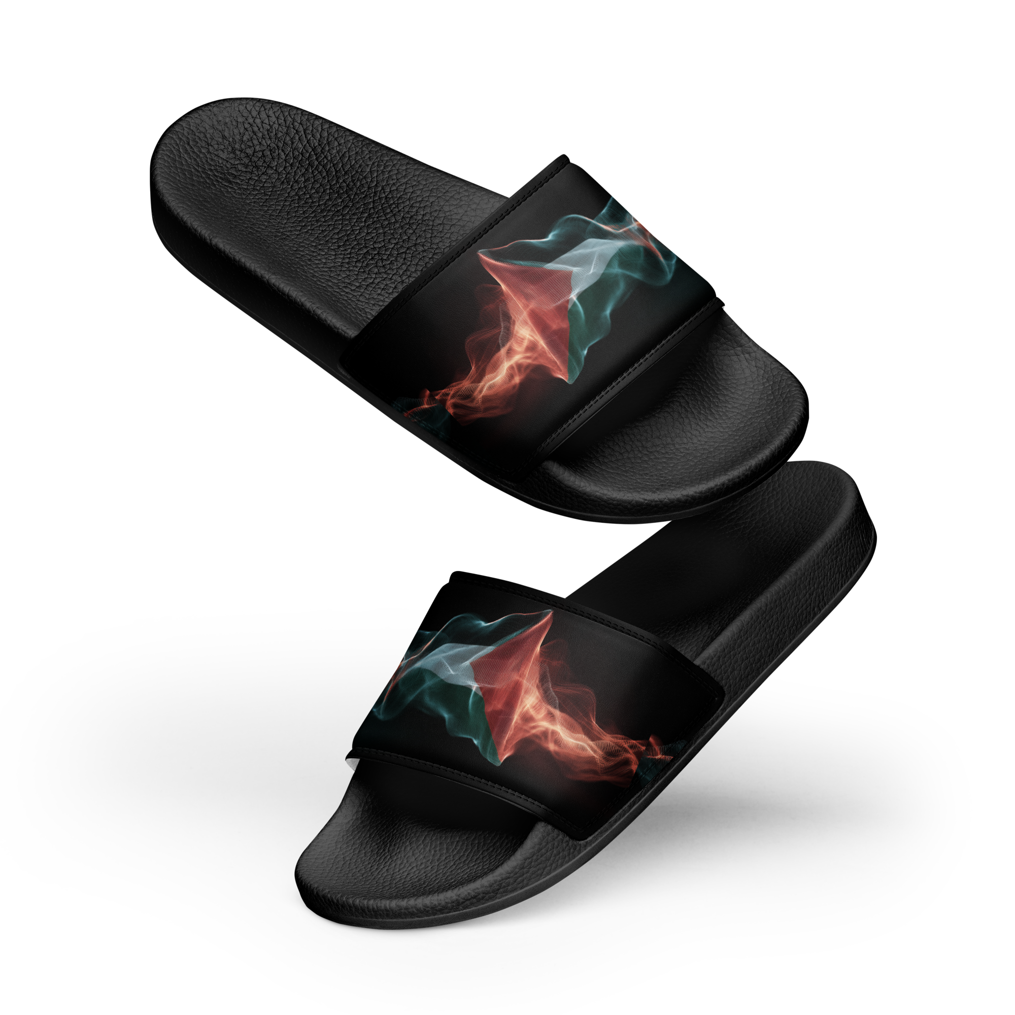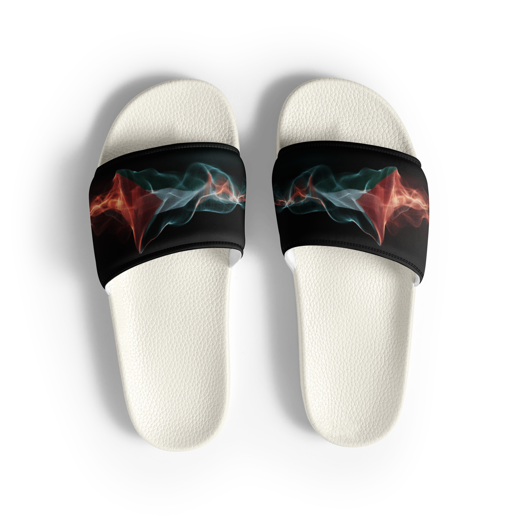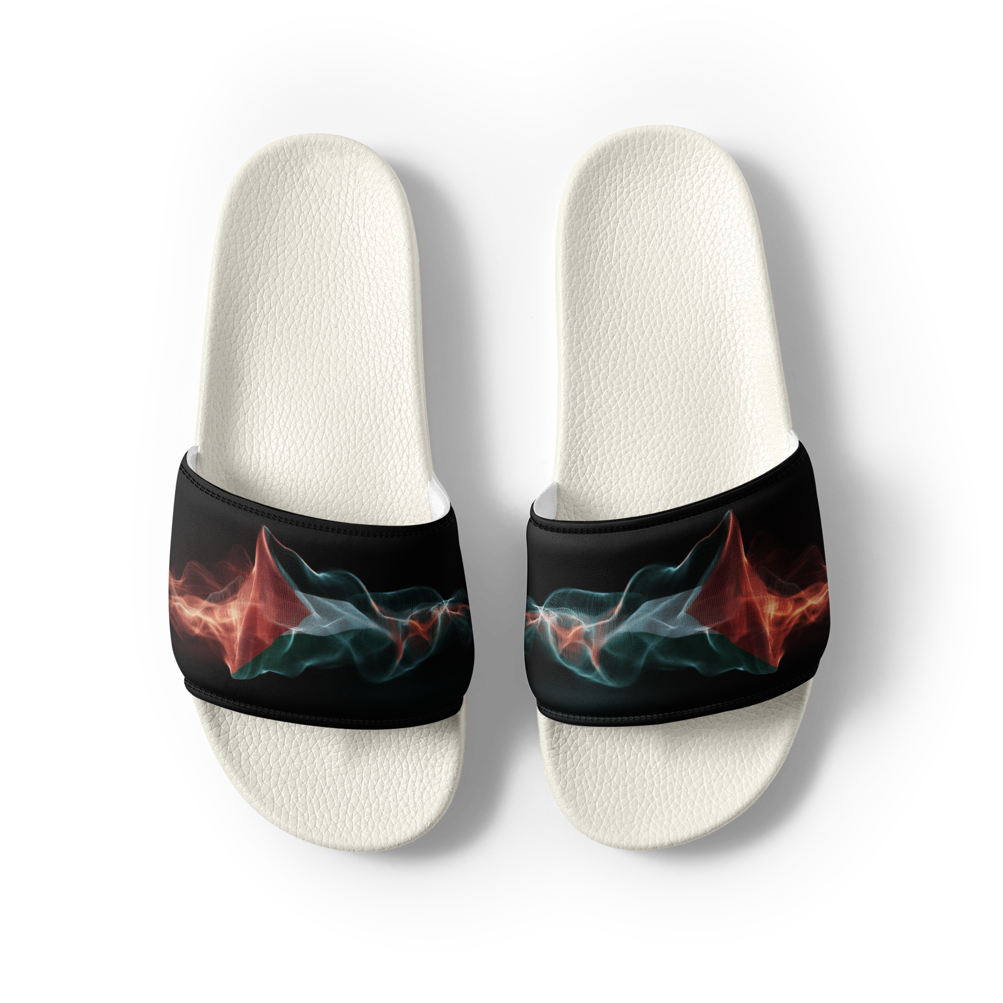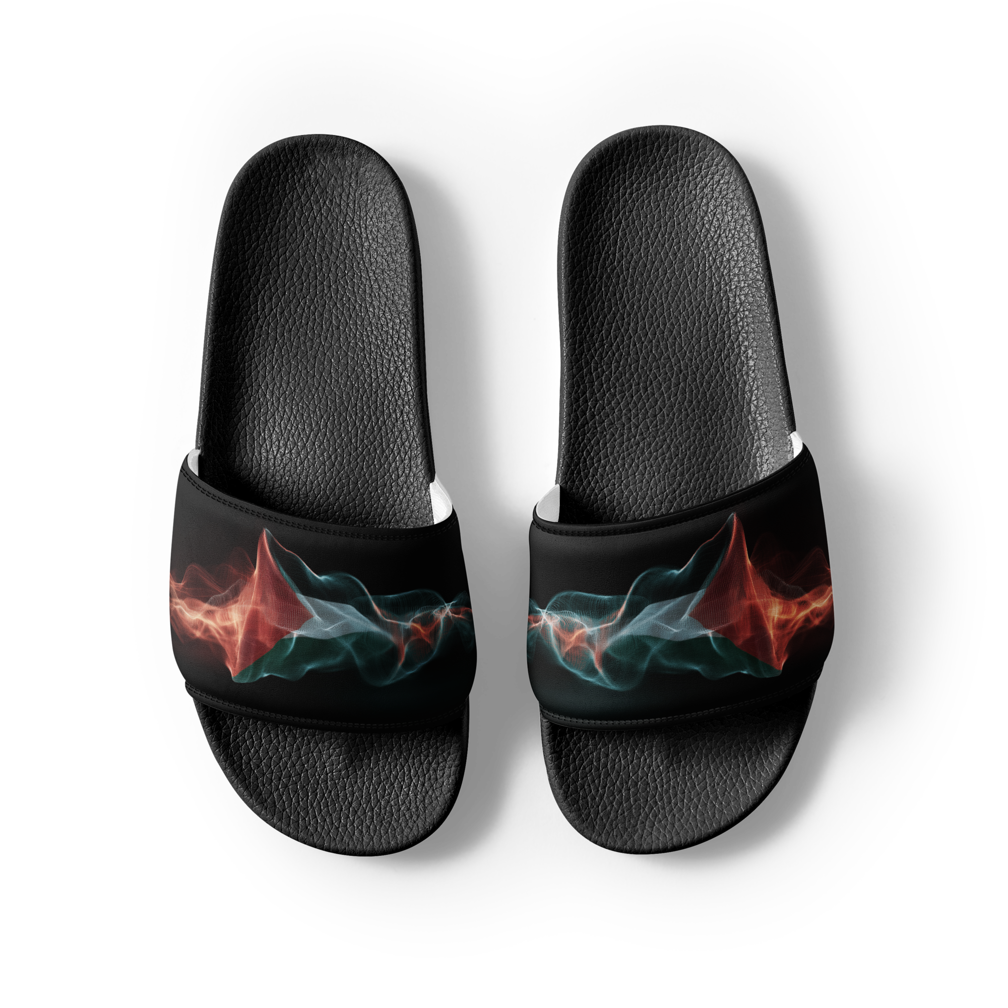 What’s a summer without comfy, open-toed shoes? Get yourself these men’s slides as an addition to your summery outfits. The cushioned upper strap and textured footbed make these slides an excellent choice for the season’s activities. Con un diseno de la bandera palestina con estilo de frequencias