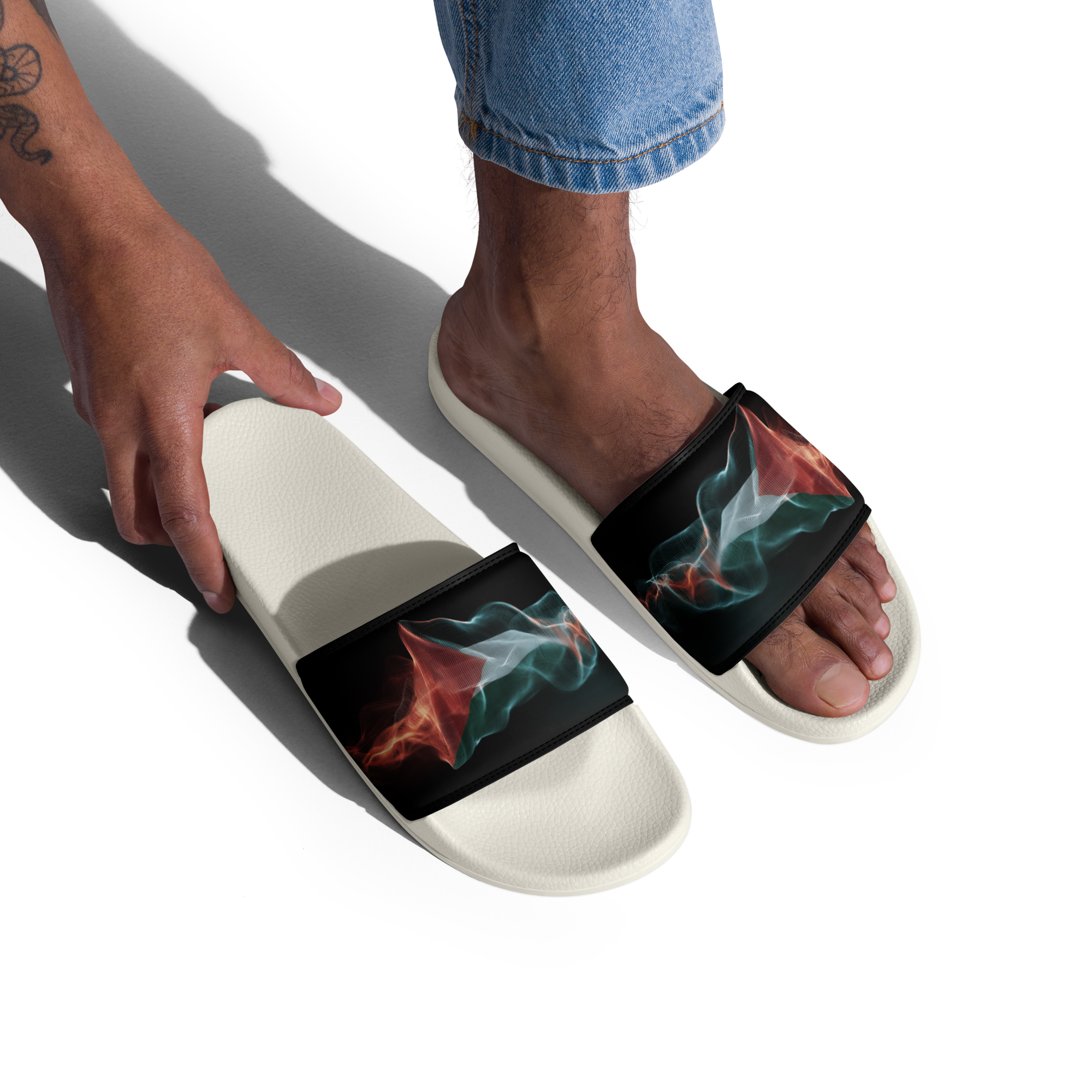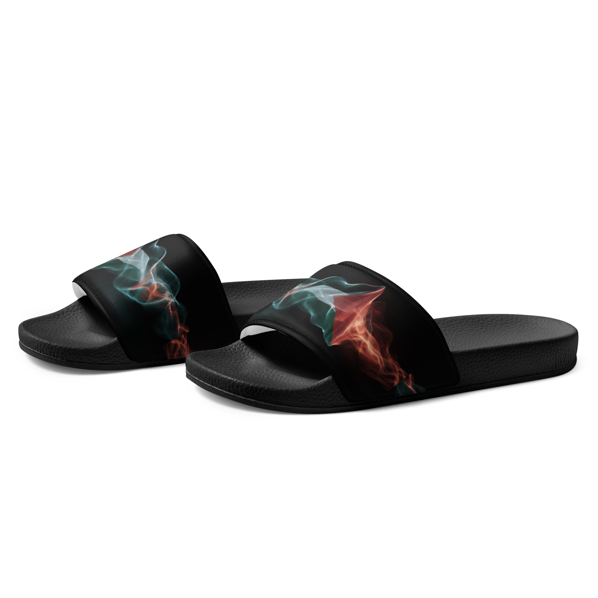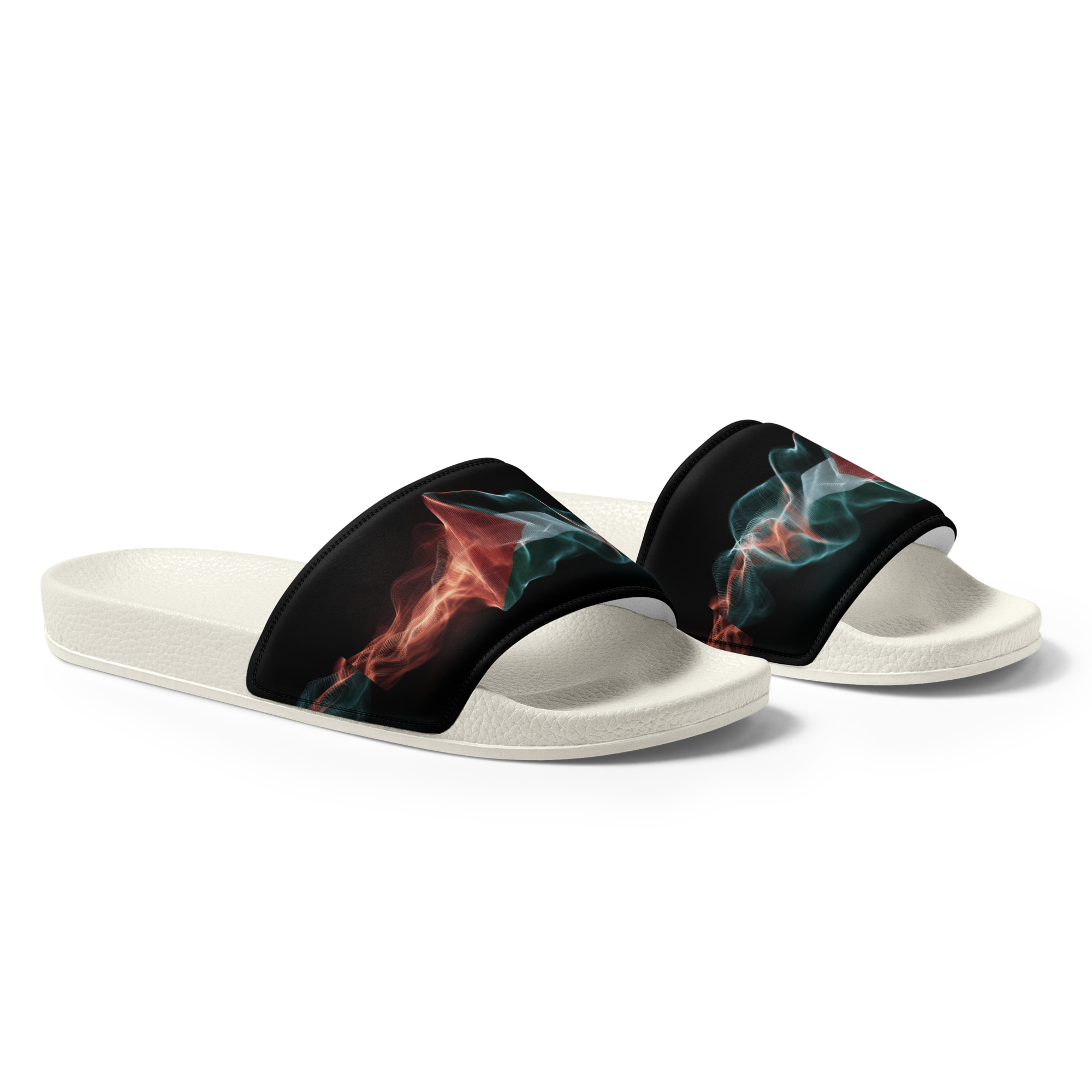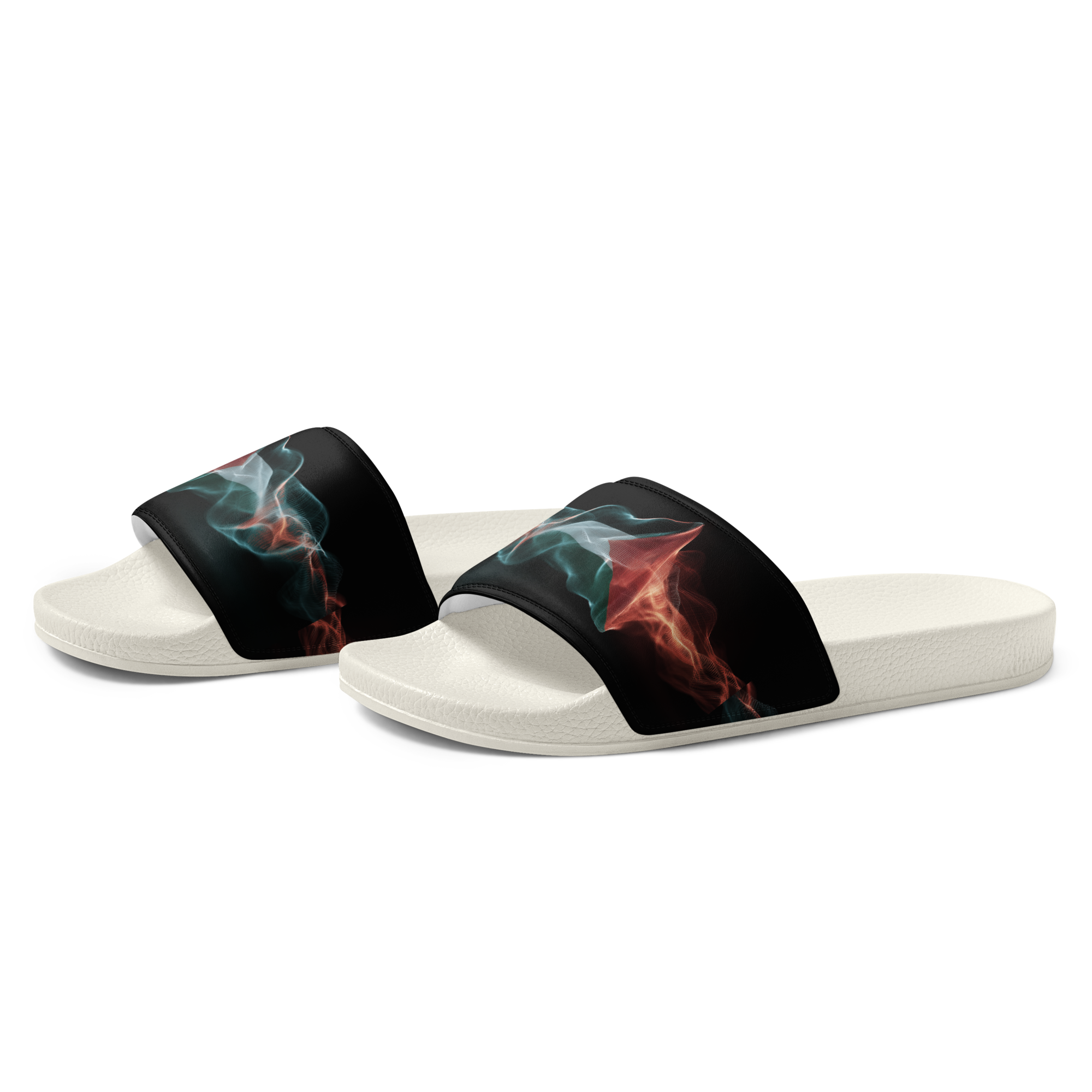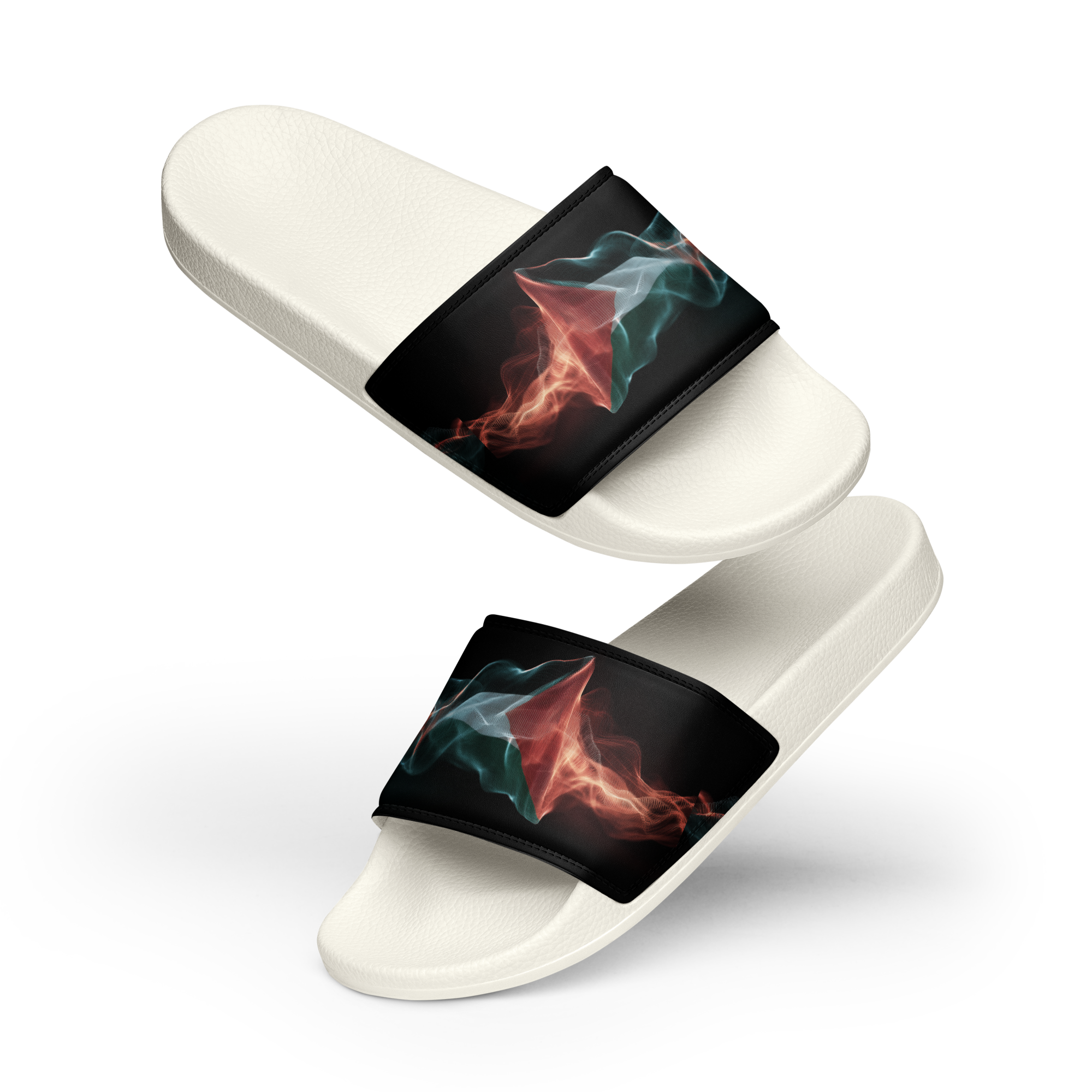 What’s a summer without comfy, open-toed shoes? Get yourself these men’s slides as an addition to your summery outfits. The cushioned upper strap and textured footbed make these slides an excellent choice for the season’s activities. Con un diseno de la bandera palestina con estilo de frequencias